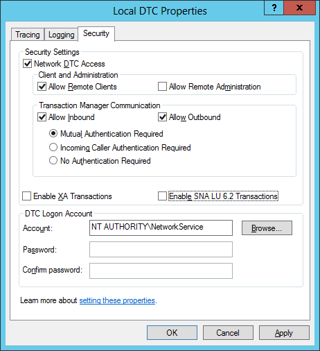 - Make sure the entry for Distributed Transaction Coordinator is selected for Domain networks.