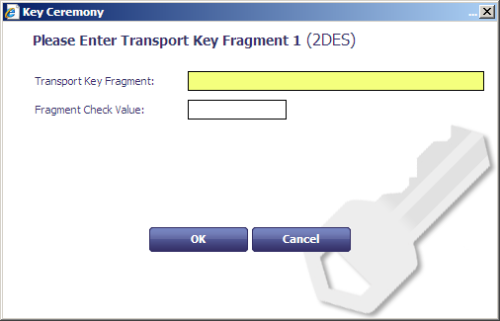 If you are using a new transport key, in the Key Ceremony dialog, enter the first part of the transport key.