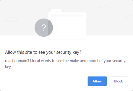 Your browser may request that you allow the website to see the authenticator; for example, in Google Chrome: