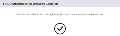 When you have completed all the steps requested, your authenticator is registered with MyID, and is available for use. You can close the browser window.
