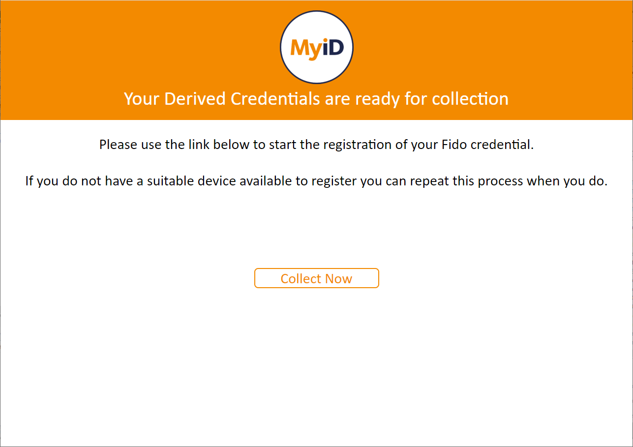 If the credential profile used for the request had the Immediate registration via Self-Service Request Portal option set, and you requested the FIDO authenticator using the Self-Service Request Portal, click Collect Now to begin the registration process.