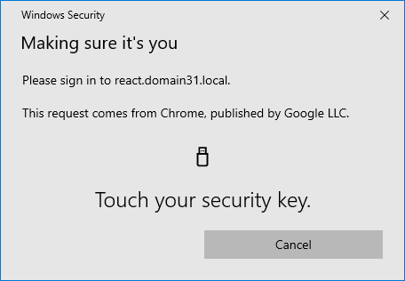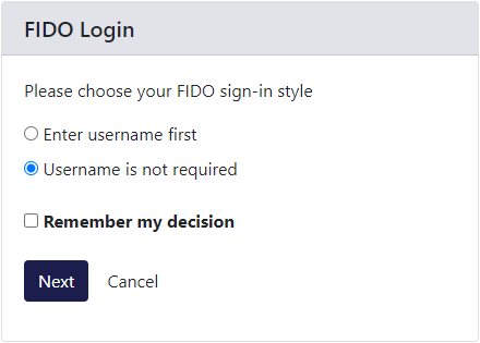 Note: The specifics of the process depend on the capabilities of your FIDO authenticator, your selected FIDO logon style (username or no username) and how your credential profile is set up for user verification.