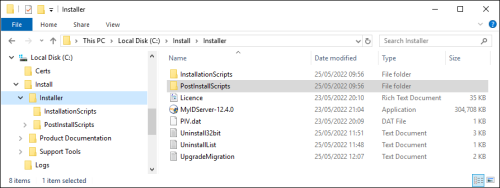 Locate the folder called PostInstallScripts in the Installer folder that contains the MyID server installation program: