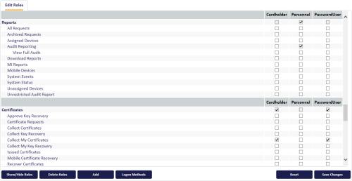 All other reports are controlled through the Reports category within the Edit Roles workflow.