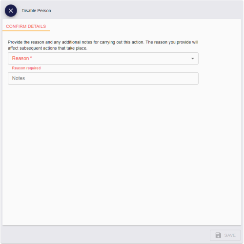 From the Reason drop-down list, select the reason that you are disabling the person's user record.