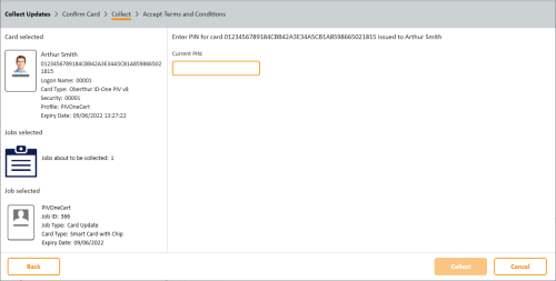 The Collect Updates workflow allows you to collect an update that has been requested for another cardholder. You can collect both simple updates (including certificate renewals) and reprovisions using this workflow.
