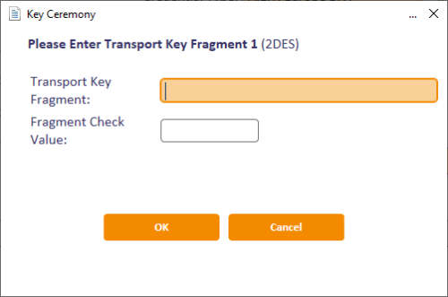 If you are using a new transport key, in the Key Ceremony dialog, enter the first part of the transport key.