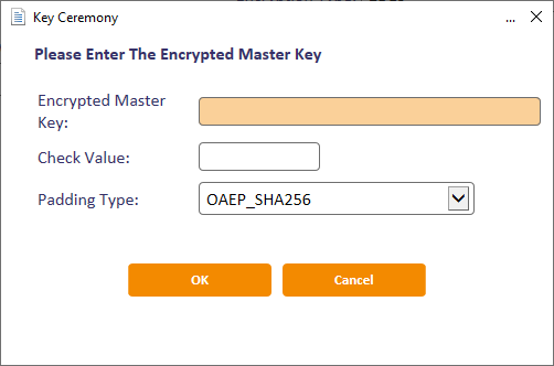 Enter the Encrypted Master Key, optionally the Check Value, and select the Padding Type that was used for the exported key.