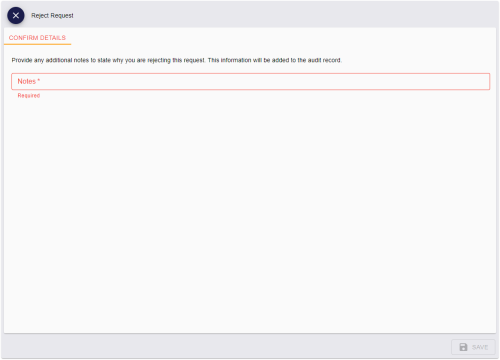 3. Review the details of the request, and provide any additional Notes to state why you are rejecting the request.