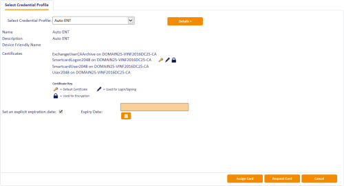 The Set an explicit expiration date option is now displayed in the Select Credential profile stage; for example, when issuing or requesting a card.