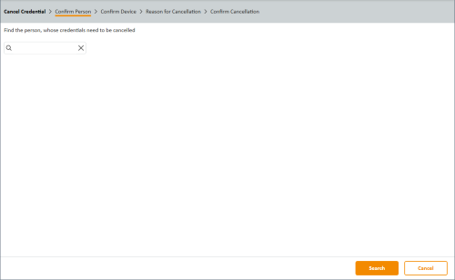 Enter the search criteria for the person who owns the credential you want to cancel, then click Search.
