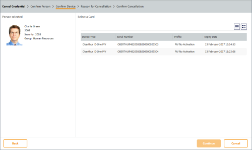 If the person has more than one credential, select the credential you want to cancel from the list.