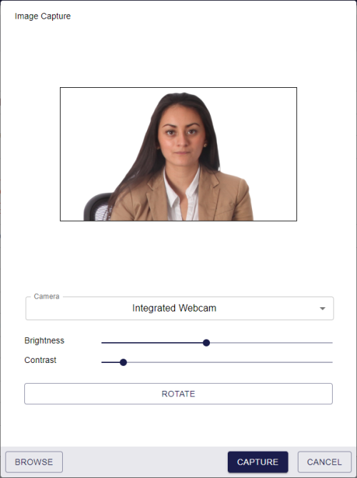 You can capture user images for a person using an attached webcam, or by uploading an existing photograph. This feature is available in the Edit Person and Add Person screens.