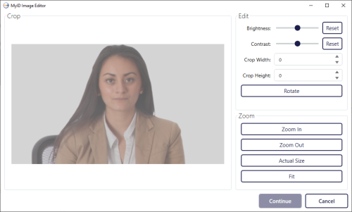 The MyID Image Editor appears when you have captured a webcam image or uploaded an existing image file.