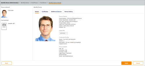 - Details – the details of the user and card, including logon name and the card's serial number.
