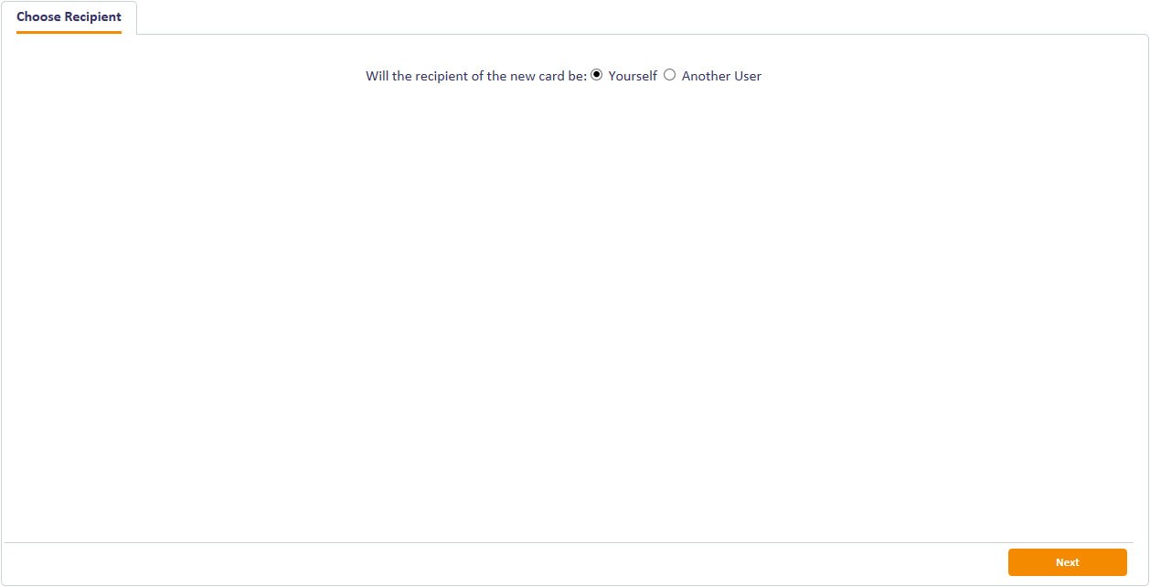 Note: To allow you to select another person, you must have a role that has the Choose Recipient option selected under Request Replacement Card entry in the Edit Roles workflow.