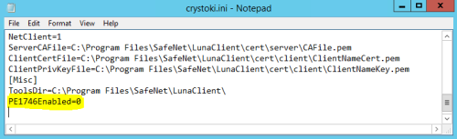 In the [Misc] section of crystoki.ini, ensure the setting PE1746Enabled=0 is present.