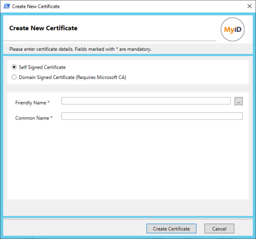 Note: You can create a domain-signed certificate using the MyID Installation Assistant on a single-tier system; you cannot create a domain-signed certificate using the MyID Installation Assistant on a split-tier web server. For split-tier systems, you must create your certificate first before running the MyID Installation Assistant.