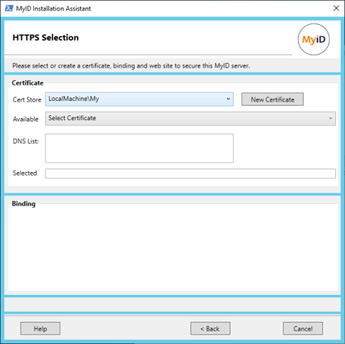 Binding – the certificate is bound to the website that will contain the MyID web pages and services using a specific port. The MyID Installation Assistant allows you to select an existing binding, or to set up a new binding.