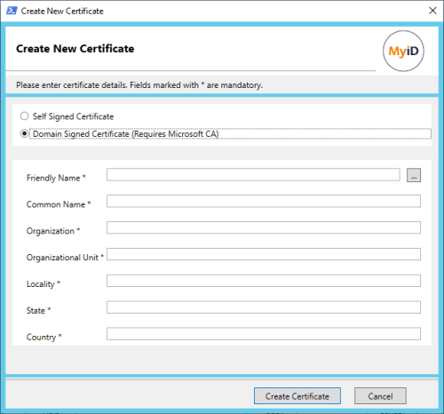 Important: You must have the correct permissions to create a domain-signed certificate. See section 2.9.4, Permissions for domain-signed certificates for details. If you do not have the correct permissions, this option is disabled.