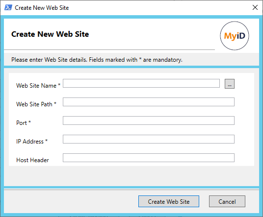 Select the website you are going to use for MyID from the Web Site Options drop-down list.