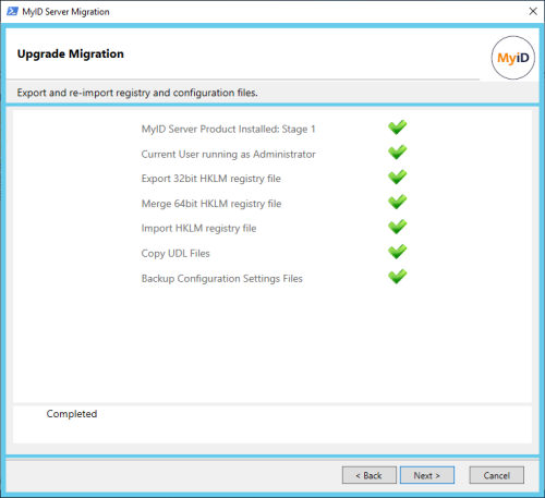 Follow the instructions for configuring MyID after you complete the upgrade.